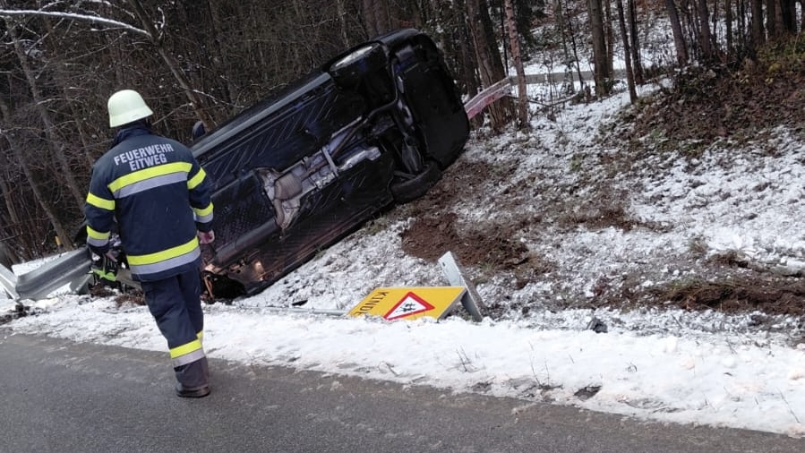 Der Lenker konnte sich selbstständig aus dem Fahrzeug befreien und blieb unverletzt. Seitens der Feuerwehr Eitweg wurde der Brandschutz sichergestellt sowie gemeinsam mit der Polizei die Unfallstelle abgesichert. In weiterer Folge unterstützten wir bei der Bergung des Unfallfahrzeuges.
